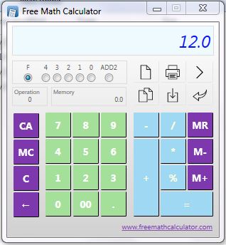 Free Math Calculator is one of the best free calculators for Windows available on the internet. Its job is to make all your calculations easy by using its great features. The calculator is a good replacement for the built-in Windows calculator. The user interface is very friendly and attractive so that you can work with it easily. A good feature of this app is that you can copy your result to clipboard and also you can paste a number from other text apps here and this makes your work a lot faster because you don’t need to enter long numbers anymore. There is a right direction arrow which opens a page stuck to the calculator and its job is to show you all your calculations. This way you can see what you have been doing since the start. You can undo your actions by pressing the corresponding button. This helps you to avoid making mistakes. There is a print function for printing all your calculations. So it is a very useful feature because you can have your calculations printed on a paper. Another great feature of this app is that it has a series of decimal separation buttons just like a real calculator. So it can show you the decimal part of numbers and this applies for up to 4 digits. Also you can make a number to become a 2-digit number. Some key features of Free Math Calculator are: